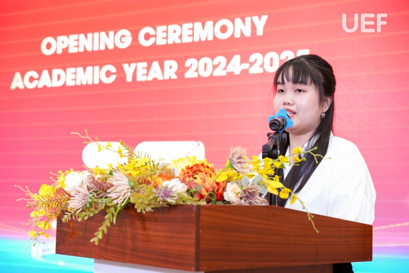 Tiếp đó, để sẵn sàng chào đón một năm học mới với nhiều kỳ vọng, thành tựu, TS. Nguyễn Thanh Giang đã tiếp thêm nguồn động lực cho tập thể Nhà UEF: “Chúng ta đang bước vào năm học mới với thế hệ sinh viên mới năng động. Các bạn tân sinh viên sẽ có 4 năm để rèn luyện kiến thức, kỹ năng cùng UEF. Xã hội hiện nay yêu cầu các bạn phải luôn học tập và cập nhật mỗi ngày. Hy vọng với sức trẻ, các bạn sẽ tích cực trau dồi để hoàn thiện bản thân. UEF sẽ luôn đồng hành với các bạn trong con đường học tập. Bắt đầu tuổi mới, năm học mới, UEF tiếp tục hành trình hội nhập toàn cầu - kết nối năm châu. Nhà trường đang vươn mình ra biển và đón nhận những cơn sóng lớn nhưng tin rằng sự đồng lòng của tập thể sẽ giúp chúng ta vượt qua tất cả”.