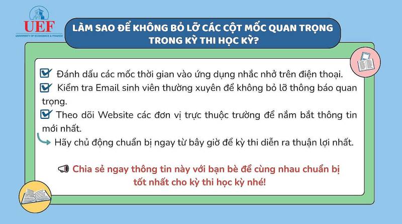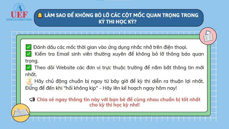 Những sự cố này không chỉ gây căng thẳng mà còn ảnh hưởng trực tiếp đến kết quả học tập. Tuy nhiên, bạn hoàn toàn có thể tránh được tất cả nếu chủ động theo dõi và ghi nhớ các mốc thời gian quan trọng mà Phòng Khảo thí đã quy định.