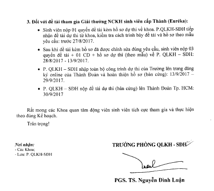 Thông báo về việc thực hiện đề tài NCKH sinh viên năm 2016-2017