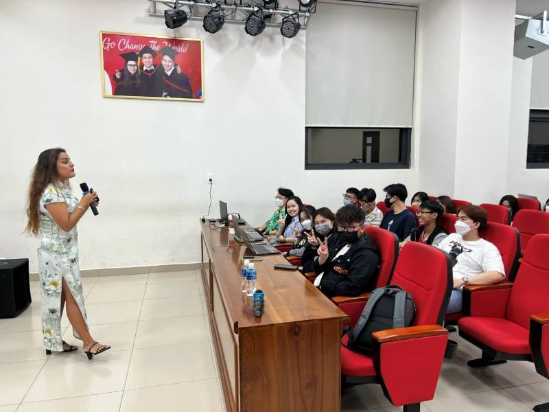 Diễn giả đã đem lại cho sinh viên sự gần gũi khi chia sẻ về kinh nghiệm thực chiến của mình tại công ty Alibaba. Cô đã giúp sinh viên có cái nhìn mới mẻ và hài hước về sự hòa nhập khi làm việc tại một môi trường mới và nhấn mạnh về tầm quan trọng của kỹ năng giao tiếp trong một môi trường giao thao văn hóa. Cô đặc biệt nhấn mạnh lại về tầm quan trọng của ngôn ngữ - một cầu nối đắc lực trong khi làm việc tại môi trường có nhiều nền văn hóa khác nhau. Thêm vào đó là những phần chia sẻ bí quyết để học tập tốt những ngôn ngữ mới khi các bạn sinh viên không tự tin vào khả năng ngôn ngữ của mình.