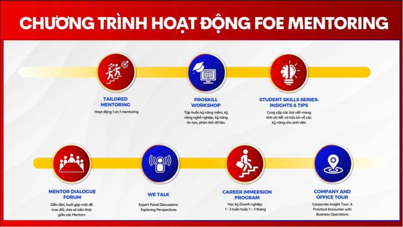 FOE Mentoring không chỉ dừng lại ở việc cố vấn, mà còn mang đến nhiều hoạt động giá trị giúp sinh viên phát triển toàn diện: