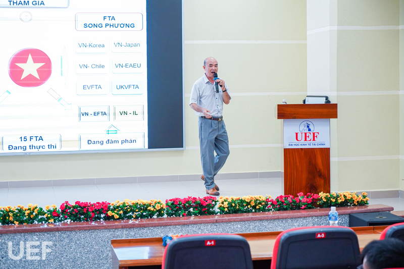 Tiếp đó, tối ngày 3/10, sinh viên UEF tiếp tục đến với báo cáo chuyên đề môn Nghiệp vụ ngoại thương với sự đồng hành của diễn giả Nguyễn Quan Phúc - Nguyên Trưởng Phòng Quản lý Xuất nhập khẩu khu vực TP.HCM - Bộ Công thương. Tại buổi báo cáo, diễn giả nhấn mạnh vào tầm quan trọng trong công việc làm thủ tục xuất nhập khẩu cho hàng hóa khi giao thương với nước ngoài.