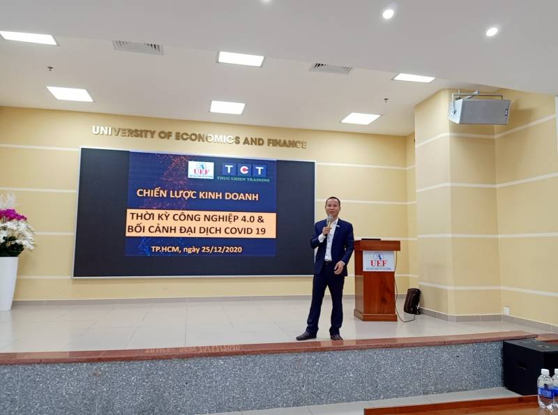 Tiếp đó, những câu chuyện thời đại như: Cách mạng công nghiệp 4.0, nền tảng công nghệ AI, sức mạnh của Network trong đại dịch toàn cầu (Covid-19) cũng như việc các doanh nghiệp đang đối mặt với việc phá sản, kinh doanh online như thế nào,... cũng đã được ông Nguyễn Thanh Lâm - Giám đốc công ty Savimex và ông Vũ Đức Thịnh - Giám đốc công ty cổ phần đào tạo Thực chiến chia sẻ vào ngày 25/12/2020 vừa qua. Đây là buổi báo cáo chuyên đề đặc biệt dành riêng cho sinh viên ngành Quản trị kinh doanh trong môn học Quản trị chiến lược.