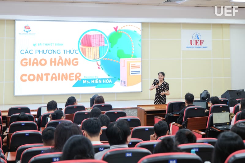 Diễn giả Hiền Hòa giúp sinh viên nhận biết và phân biệt các phương án giao nhận hàng container tại cảng