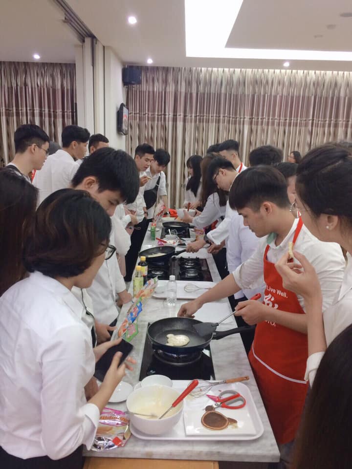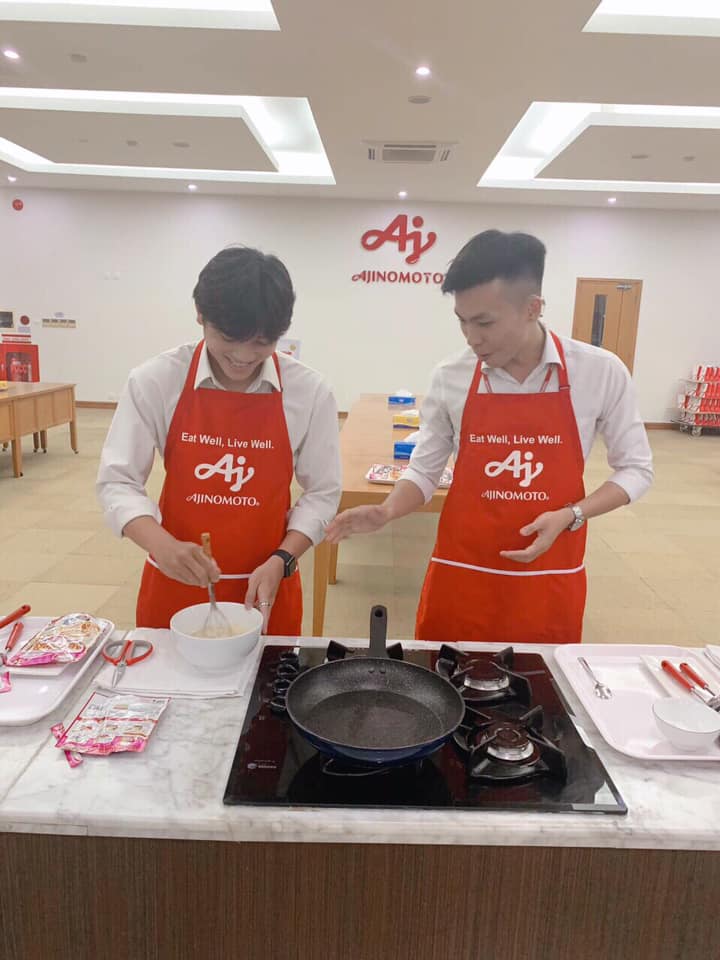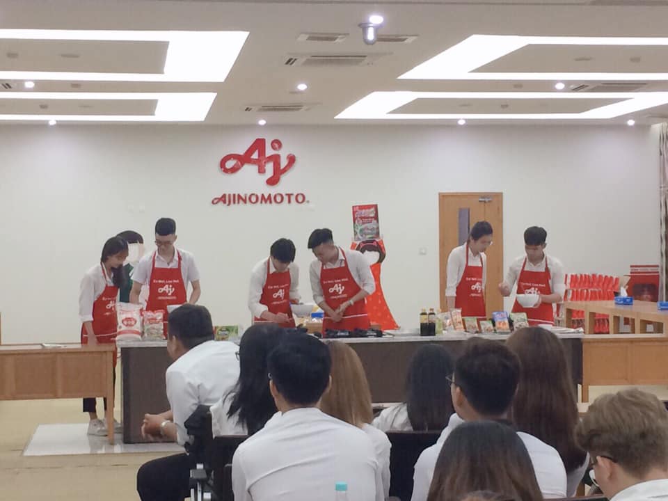 Ngoài ra, các bạn sinh viên cũng được thực hiện thử thách nướng bánh rán bằng bột do Ajinomoto sản xuất nhờ sự hướng dẫn của đại diện công ty, đồng thời trải nghiệm dùng thử sản phẩm mới của doanh nghiệp này. Hơn thế nữa, đại diện công ty cũng sẵn lòng chia sẻ và giải đáp các ý kiến thắc mắc của các bạn sinh viên về 1 số công đoạn sản xuất cũng như về các giá trị chất lượng mà Ajinomoto theo đuổi.