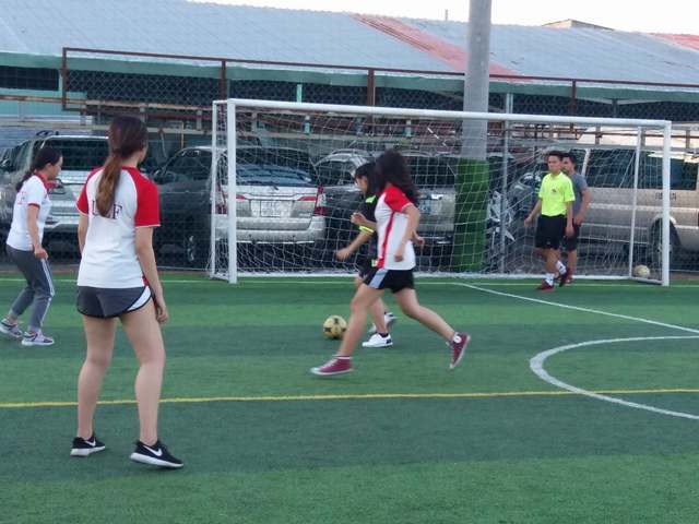 Ở chiến tuyến bên kia, các bạn nữ cũng thể hiện tinh thần đồng đội, sự dẻo dai, không ngại va chạm với những màn đi bóng đầy khéo léo. Không thua kém các đấng mày râu, các bạn nữ thuộc liên quân 14D1QT01 cũng đã xuất sắc giành giải nhì chung cuộc.