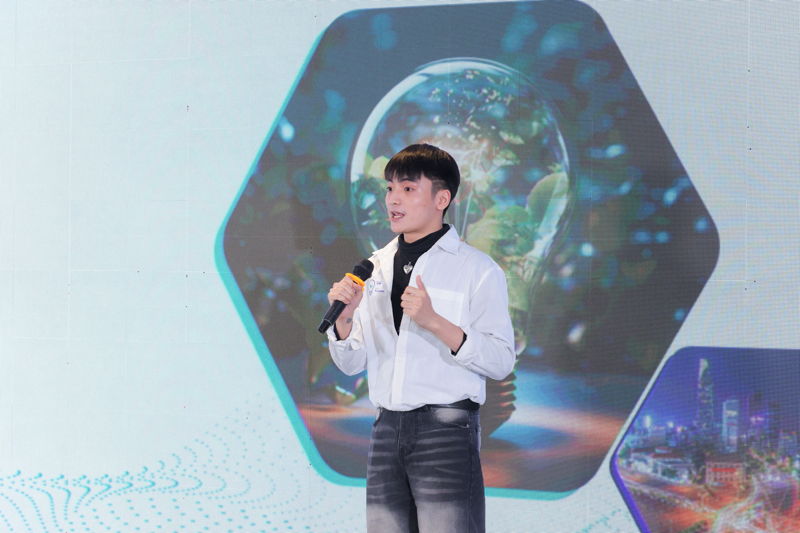 Bạn Huỳnh Tuấn Kiệt đại diện Nhóm EcoRoute trình bày dự án tại buổi kick-off