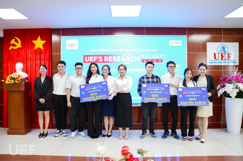 - Giải Khuyến khích: Đề tài "Xác định phòng vệ chính đáng theo pháp luật hình sự Việt Nam - Kinh nghiệm quốc tế và bài học cho Việt Nam"; Đề tài "Khảo sát các yếu tố ảnh hưởng đến khả năng tìm việc và lựa chọn doanh nghiệp thực tập của sinh viên ngành ngôn ngữ Trung - Hàn - Nhật tại UEF"; Đề tài "Tiếp cận QUAD từ 2018 đến nay qua lý thuyết về liên minh trong Quan hệ quốc tế".