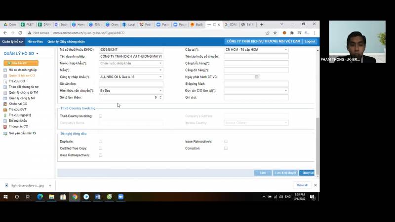 Website do Anh Thông tạo để giúp doanh nghiệp làm C/O