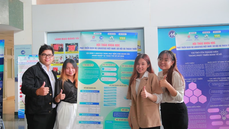 Tham gia Hội thảo khoa học quốc gia năm nay, bài nghiên cứu "Vận hành e-logistics trong hoạt động kinh doanh của doanh nghiệp tại TP.HCM" bao gồm các tác giả: Nguyễn Ngọc Thúy Vy - Sinh viên khóa 2020 ngành Logistics và Quản lý chuỗi cung ứng; Trần Nguyễn Ngọc Hà - Sinh viên khóa 2020 ngành Logistics và Quản lý chuỗi cung ứng; Lê Thành Long - Sinh viên khóa 2020 ngành Kinh doanh quốc tế; Trần Hoàng Thục Nhi - Sinh viên khóa 2020 ngành Kinh doanh quốc tế; Đỗ Thị Hà Phương - Sinh viên khóa 2019 ngành Logistics và Quản lý chuỗi cung ứng.