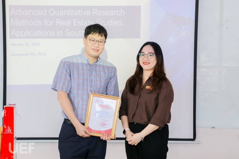 ào ngày 10/1, Khoa Kinh tế, ngành Bất động sản phối hợp với Câu lạc bộ Phát triển bất động sản bền vững (SPD Club) tổ chức buổi research seminar "Advanced Quantitative Research Methods for Real Estate Studies: Applications in South Korea".