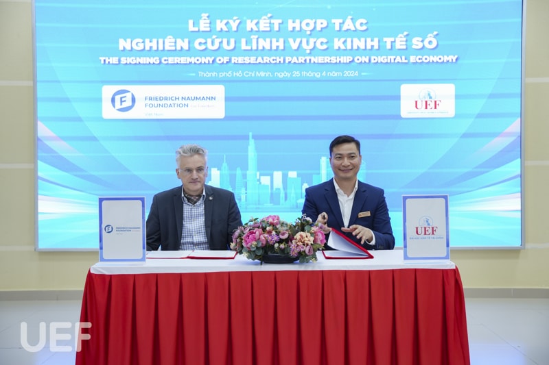 Sự thành công của các hoạt động nghiên cứu khoa học là kết quả nghiên cứu tích cực từ các nhà khoa học và sự đồng hành của các tổ chức tài trợ. Qua trao đổi về năng lực nghiên cứu khoa học của UEF, FNF đã quyết định đồng hành và tài trợ cho dự án nghiên cứu "kinh tế số" do nhóm các nhà khoa học UEF thực hiện. Hai bên đã ký kết hợp tác thỏa thuận ngay tại Hội nghị. Được biết, FNF là một tổ chức của Đức được thành lập vào năm 1958, hoạt động với sứ mệnh thúc đẩy các giá trị tự do, nhà nước pháp quyền, kinh tế thị trường tại Đức và trên thế giới.
