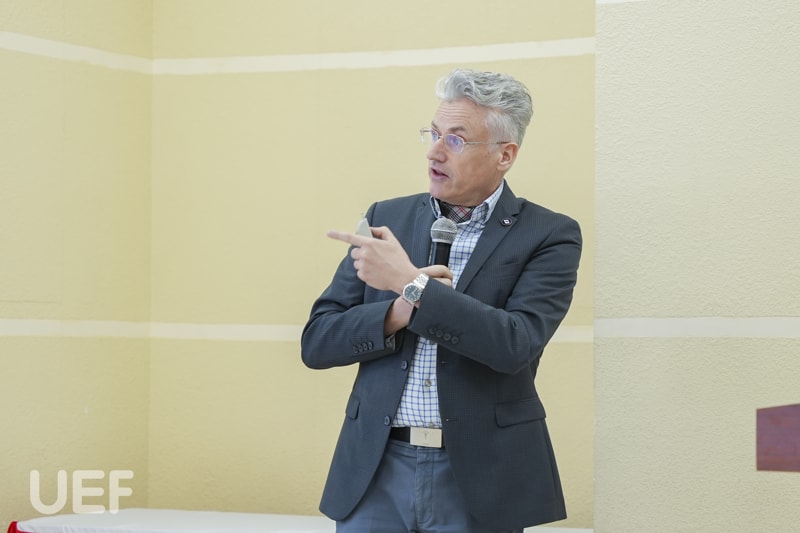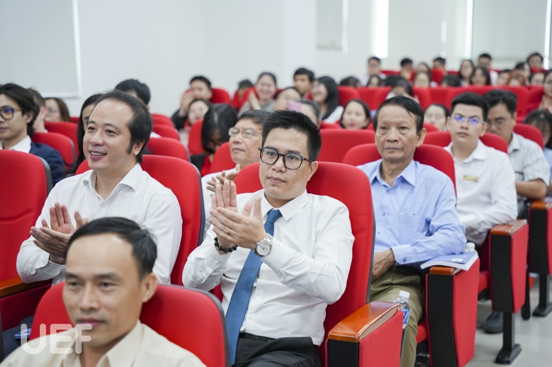Về phía UEF có ông Đỗ Quốc Anh - Phó Chủ tịch Hội đồng trường; TS. Nguyễn Thanh Giang - Hiệu trưởng; TS. Ngô Minh Hải - Phó Hiệu trưởng, Trưởng Ban tổ chức; GS.TS. Nguyễn Trung Kiên - Tổng Biên tập Tạp chí Phát triển và Hội nhập; TS. Nguyễn Thành Luân - Phó Trưởng phòng Khoa học công nghệ và Dự án quốc tế cùng đông đảo giảng viên, sinh viên đến từ các trường đại học khác.