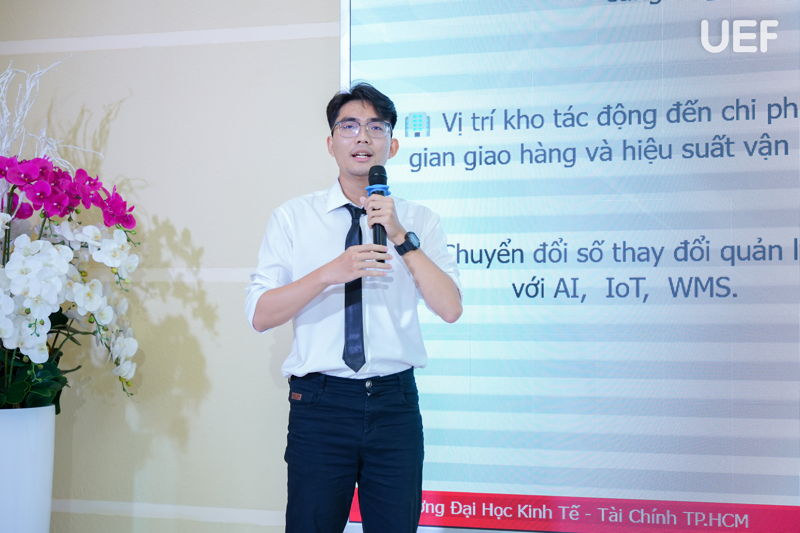 Ở phiên tổng quan, hai đề tài nổi bật từ sinh viên UEF và Đại học Hoa Sen đã khơi mở nhiều hướng tiếp cận thú vị, gồm: “Chọn địa điểm đặt nhà kho tại khu vực Đông Nam Bộ trong bối cảnh chuyển đổi số - Nghiên cứu thực nghiệm dựa trên phương pháp phân tích thức bậc AHP” và “Các yếu tố nội tại tác động đến hành vi trả hàng của sinh viên trên sàn thương mại điện tử TikTok Shop”. Các đề tài đều được đánh giá cao ở tính thực tiễn và khả năng ứng dụng vào bối cảnh hiện nay, đặc biệt trong lĩnh vực logistics, hành vi tiêu dùng và chuỗi cung ứng thông minh.