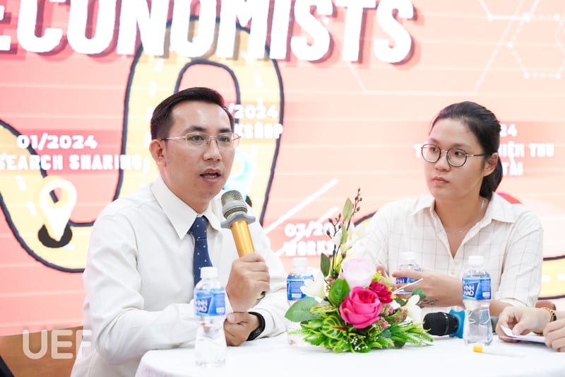 Mở đầu chương trình, TS. Ngô Minh Hải chia sẻ: “Nghiên cứu khoa học chiếm vai trò quan trọng trong đời sống học tập. Thông qua quá trình nghiên cứu khoa học, chúng ta đã cho ra đời nhiều sáng kiến ý nghĩa. Hoạt động nghiên cứu khoa học của sinh viên Nhà UEF những năm gần đây luôn sôi nổi và đạt được nhiều thành tích nổi bật, đặc biệt đối với Khoa Kinh tế. Năm nay, tôi chúc các bạn sinh viên nghiên cứu được nhiều đề tài sáng tạo, ý nghĩa và đạt được nhiều thành tích tốt.”