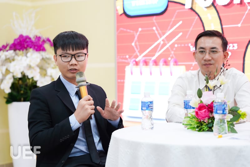 Tham dự chương trình có các khách mời: ThS. Trần Đức Sự - Phó Giám đốc Trung tâm Phát triển Khoa học và Công nghệ Trẻ (thuộc Thành Đoàn TP.HCM); chị Huỳnh Thị Thu Thảo - Chuyên viên Sales - Marketing Công ty Tân Cảng, Cựu sinh viên UEF khóa 2019; anh Thái Quốc Huy - Chuyên viên kinh doanh và dự án tại công ty TM Warehouse Solutions, Cựu sinh viên UEF.