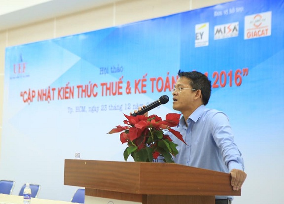 Với chủ đề “Cập nhật kiến thức thuế và kế toán năm 2016”, khoa Tài chính – Kế toán Trường Đại học Kinh tế - Tài chính thành phố Hồ Chí Minh (UEF) đã kết hợp với các đơn vị tài trợ tổ chức buổi hội thảo chuyên đề vào chiều ngày 23/12 vừa qua.