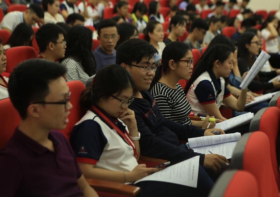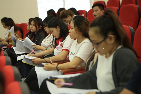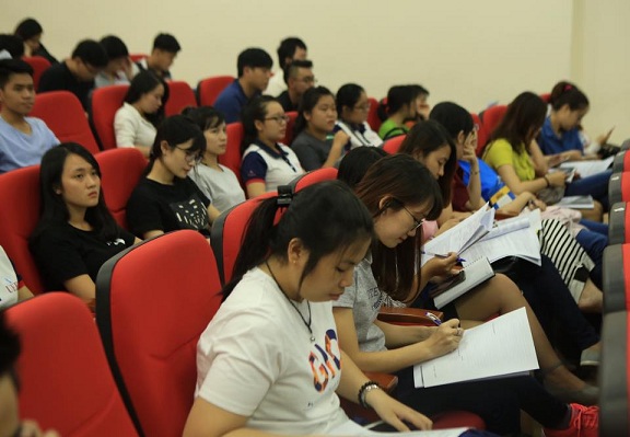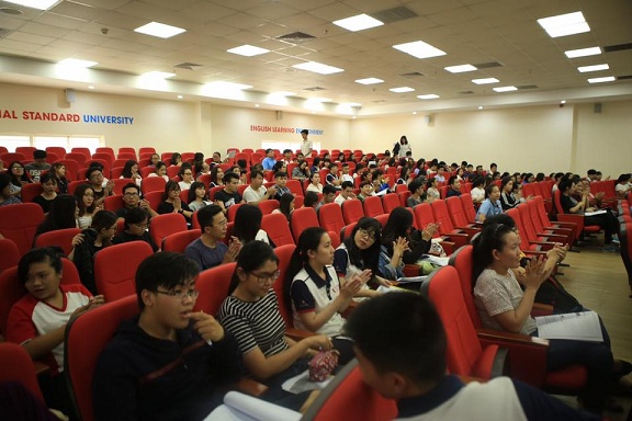 Đông đảo sinh viên đến tham dự và chăm chú theo dõi:
