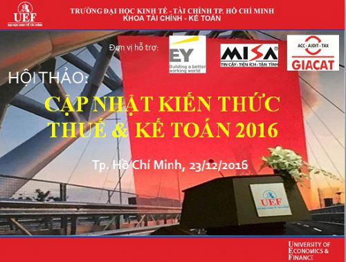 Nhằm phổ biến những nội dung quy định mới về thuế và chế độ kế toán trong năm 2016, giúp sinh viên cập nhật những thay đổi, bổ sung cho kiến thức đã học trên...