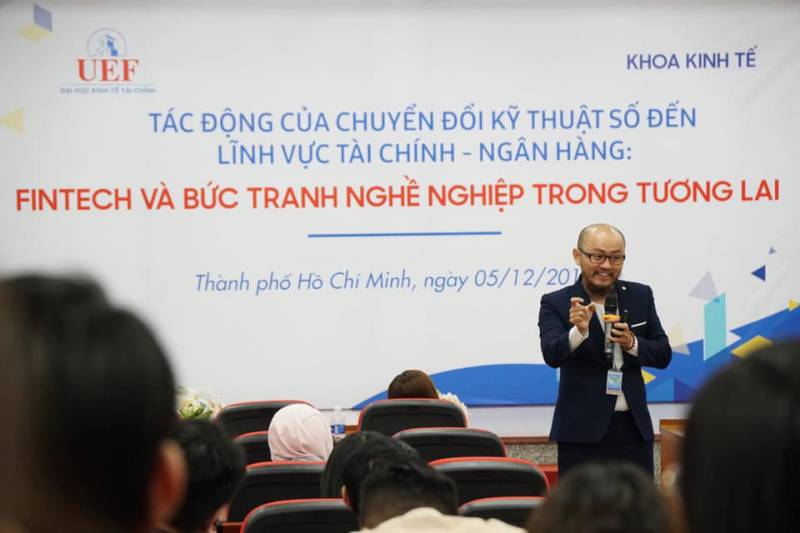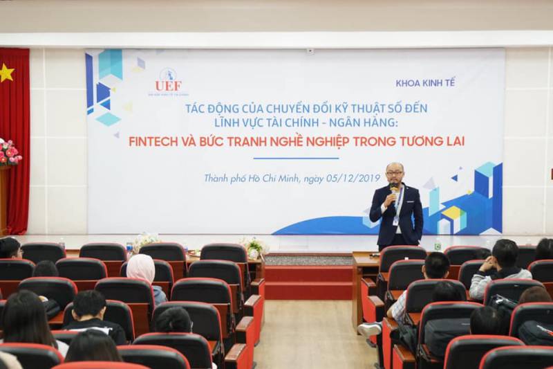 công nghệ số, khoa Kinh tế UEF đã tổ chức buổi hội thảo với chủ đề “Tác động của chuyển đổi kỹ thuật số đến lĩnh vực Tài chính ngân hàng” diễn ra trong sáng nay (05/12/2019). Chương trình có sự tham gia của các khách mời là những người có “bề dày” kinh nghiệm trong lĩnh vực này. Tại hội thảo, các diễn giả đã chia sẻ những câu chuyện nghề, những khó khăn cũng như những cơ hội, thách thức mà Fintech đem lại.