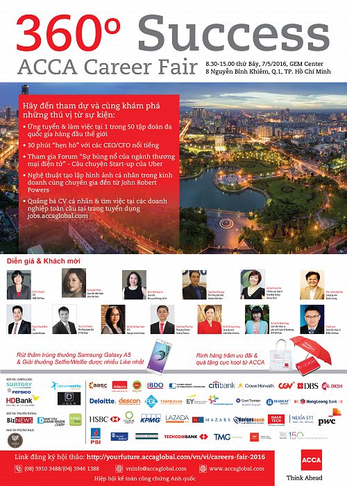 Ngày hội Nghề nghiệp ACCA - 360◦ Success - là ngày hội việc làm dành riêng cho ngành tài chính, kế toán, ngân hàng, đầu tư được tổ chức bởi Hiệp hội kế toán công...