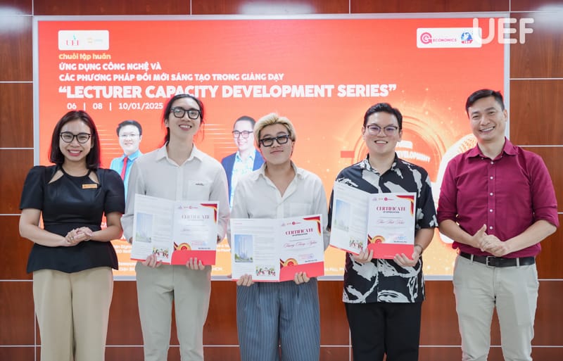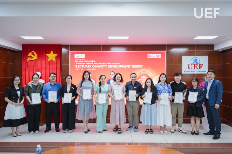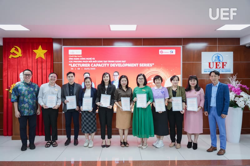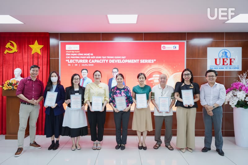 Buổi tổng kết và trao giấy chứng nhận cũng đã diễn ra sau đó, đại diện UEF có TS. Ngô Minh Hải - Phó Hiệu trưởng; TS. Mạch Trần Huy - Phó Chánh Văn phòng trường, Giám đốc Nhân sự; ThS. Nguyễn Văn Mạnh - Phó Chánh Văn phòng trường, Trưởng ban Thanh tra đã ghi nhận sự cố gắng và tinh thần học hỏi, trau dồi kỹ năng cần thiết của các thầy cô.