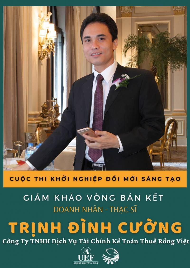 Là vị giám khảo tâm huyết đồng hành với UEF ngay từ những ngày đầu cuộc thi Khởi nghiệp, doanh nhân Trịnh Đình Cường được các sinh viên yêu mến cùng với sự tín nhiệm từ các đồng nghiệp. Anh không ngừng trau dồi kỹ năng, kiến thức và đạo đức với hơn 15 năm là giảng viên ở các trường đại học, lại là giám đốc công ty chuyên về đào tạo nguồn nhân lực. Có thể thấy, CEO Đình Cường hiểu rõ việc đào tạo và phát triển nguồn nhân lực là con đường phát triển bền vững, góp phần tạo điều kiện cho các bạn trẻ có tri thức phát huy trí tuệ, đóng góp sức lực cho sự phát triển kinh tế đất nước.