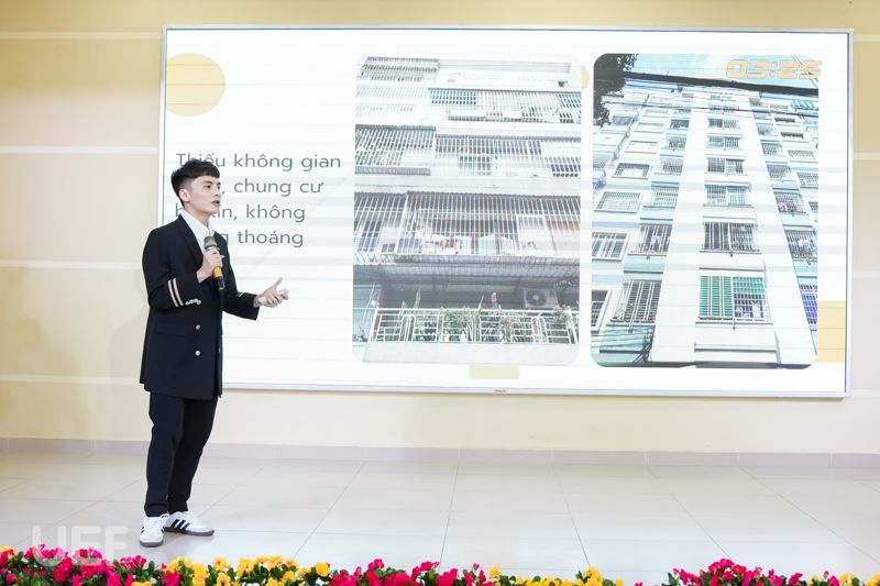 Dàn giám khảo chuyên môn tham gia đánh giá các sáng kiến của sinh viên có: TS.KTS. Lê Thị Thu Hương - Trưởng ngành Kiến trúc, Khoa Kỹ thuật, Trường Đại học Việt Đức; TS. Phạm Ngọc Tùng - Giám đốc đầu tư Công ty CP Tập đoàn Hưng Thịnh; ThS. KTS. Vũ Linh Quang - Giám đốc điều hành Công ty TNHH Ardor Green; ThS. Ung Thị Phương Thảo - Giảng viên Trung tâm Đào tạo thiết kế dự án UEF; ThS. Trần Hoàng Nam - Trưởng ngành Bất động sản, Khoa Kinh tế UEF.