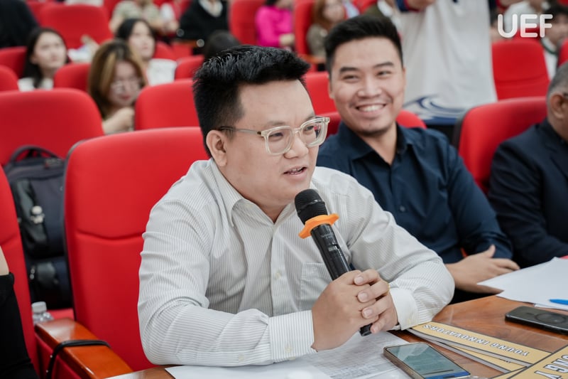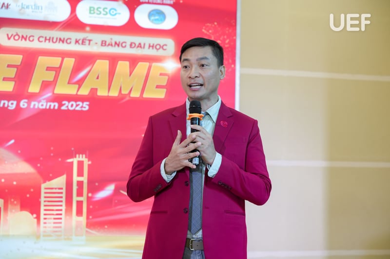 Phát biểu mở đầu chương trình, TS. Ngô Minh Hải gửi lời động viên đến các đội thi, đồng thời đánh giá cao tinh thần sáng tạo, nỗ lực chuẩn bị và sự chuyên nghiệp của các bạn sinh viên trong suốt hành trình tham gia cuộc thi. Thầy kỳ vọng Young Innovators 2025 sẽ tiếp tục là bệ phóng cho những ý tưởng đột phá, góp phần hình thành thế hệ người trẻ bản lĩnh, dám nghĩ, dám làm và sẵn sàng kiến tạo tương lai.