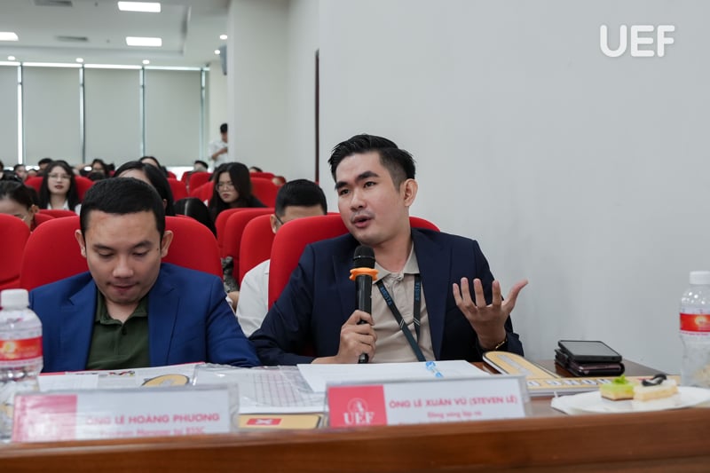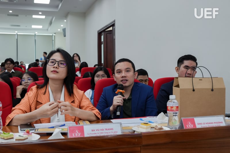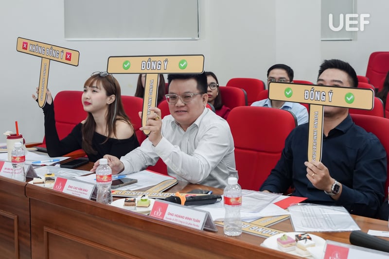 Về phía UEF có sự tham dự của TS. Nhan Cẩm Trí - Phó Hiệu trưởng Nhà trường; TS. Ngô Minh Hải - Phó Hiệu trưởng Nhà trường; ThS. Bùi Quang Đông - Trưởng phòng Công tác sinh viên; TS. Majo George - Trưởng Khoa Kinh tế; TS. Đỗ Thị Thu Hà - Phó Trưởng Khoa Kinh tế; ThS. Nguyễn Lê Đông Xuân - Phó Trưởng Khoa Kinh tế; ThS. Nguyễn Thị Bích Vân - Phó Trưởng Khoa Quan hệ công chúng và Truyền thông; ThS. Trần Thanh Huy - Phó Giám đốc Trung tâm Hợp tác doanh nghiệp cùng các thầy cô, mentor đồng hành với top 10 và sinh viên đến từ các trường cao đẳng, đại học, học viện tham gia cổ vũ.