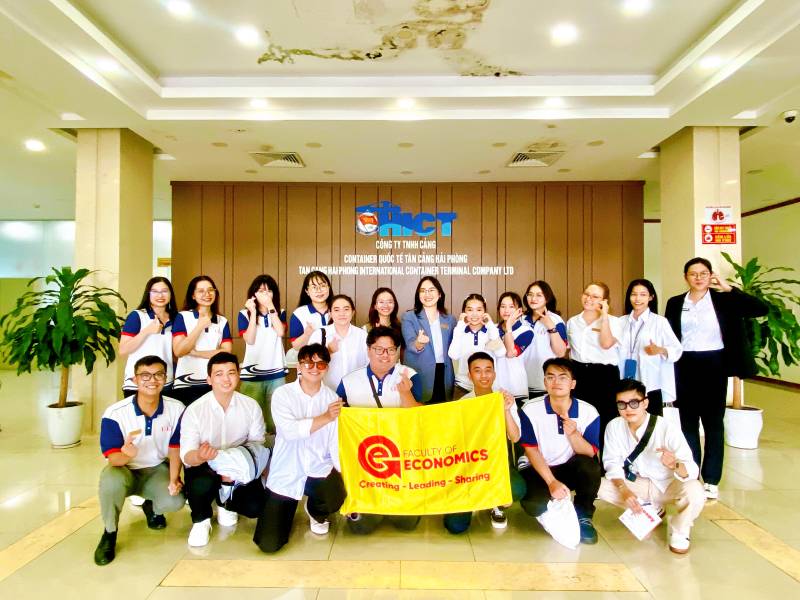 Công ty TNHH Cảng Container Quốc Tế Tân Cảng Hải Phòng (TC-HICT). Tại đây, sinh viên được quan sát và học hỏi các hoạt động xếp dỡ hàng hóa lên xuống từ những con tàu khổng lồ, cách sắp xếp và bố trí bãi container phục vụ các lượt hàng hóa đến và đi từ những cầu cảng trải dài.