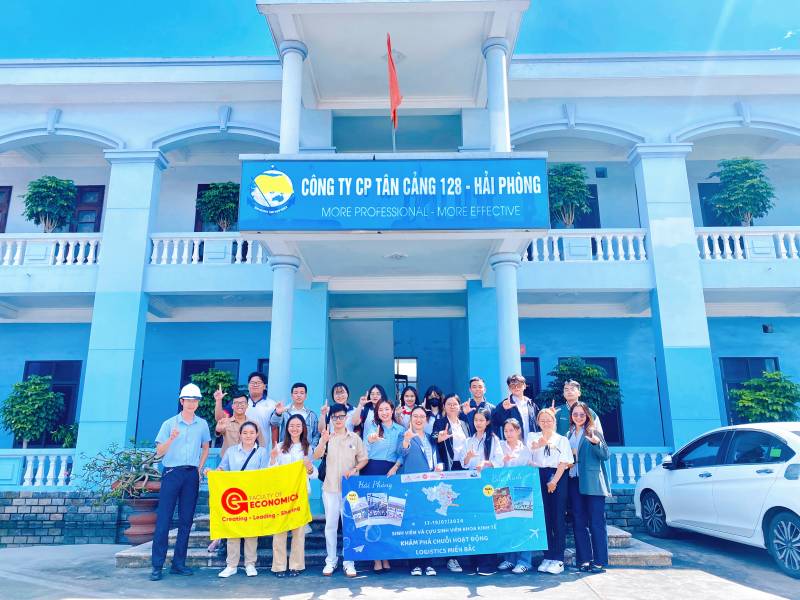 Tiếp đó, Công ty Cổ phần Tân Cảng 128 - Hải Phòng cũng đã giúp cho sinh viên hiểu hơn về cảng nội địa, nơi trung chuyển hàng hóa từ nơi nước cạn ra cảng nước sâu HICT và bốc xếp hàng cho tàu nhỏ, quá trình tháo dỡ hàng và xếp hàng trong thùng container, tiêu chuẩn nghiêm ngặt về bảo mật của hải quan cùng các đối tác nước ngoài. Ở đây, sinh viên cũng đã dần định hình được về hệ thống cảng và dịch vụ logistics của Tổng công ty Tân Cảng Sài Gòn ở phía Bắc với hệ thống cảng HICT và các cảng ICD ở trong nội địa.