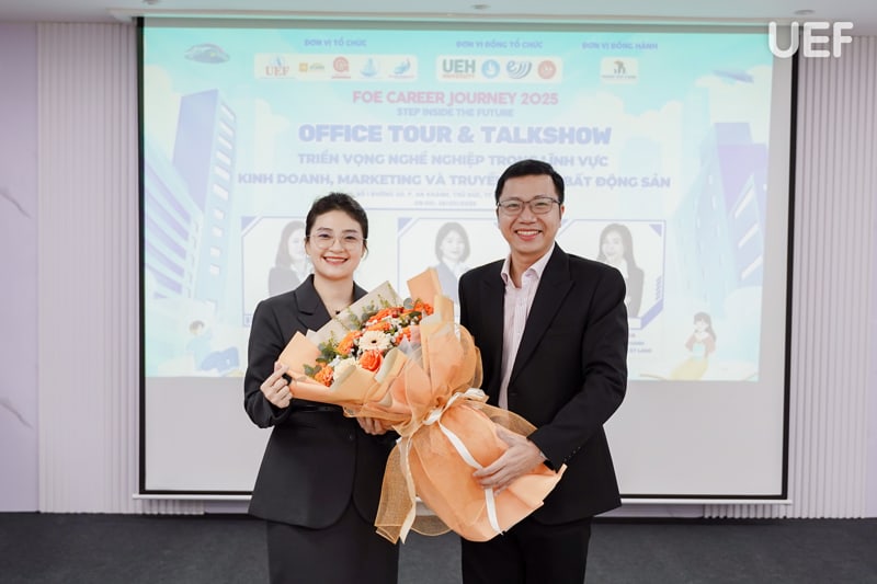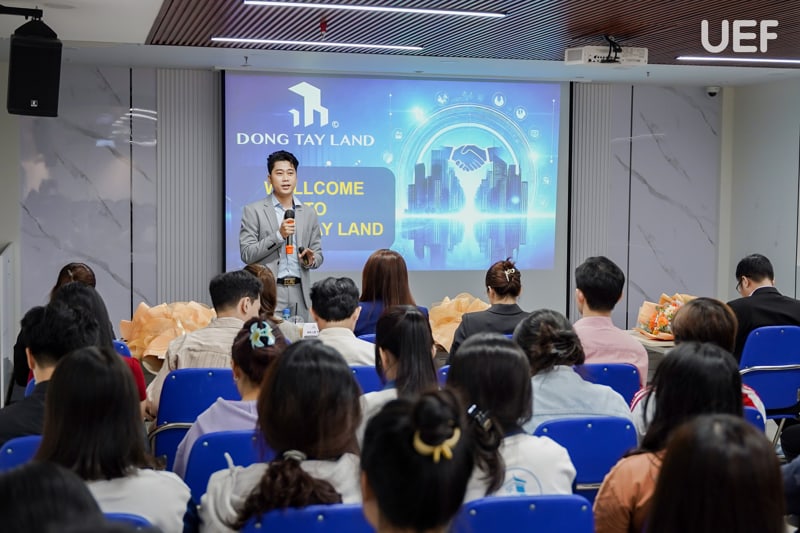 Nhằm giải đáp những thắc mắc đó, sáng ngày 28/3, Khoa Kinh tế UEF (FOE) đã tổ chức chương trình FOE Career Journey 2025 - Step Inside The Future với điểm đến là Công ty Cổ phần Đông Tây Land. Trong khuôn khổ chương trình, talkshow "Triển vọng nghề nghiệp trong lĩnh vực kinh doanh, marketing và truyền thông bất động sản" mang đến cho UEFers cái nhìn toàn cảnh về ngành, đồng thời mở ra cơ hội kết nối, học hỏi từ những chuyên gia giàu kinh nghiệm.