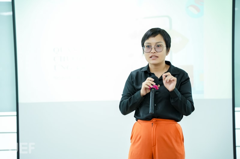 Đến từ doanh nghiệp chuyên về lĩnh vực thực phẩm, diễn giả Hồng Diễm đã cung cấp nhiều thông tin bổ ích cho sinh viên về quá trình vận hành thực tế được tối ưu hóa khi áp dụng công nghệ để đạt được những tiêu chuẩn trong nước và quốc tế.