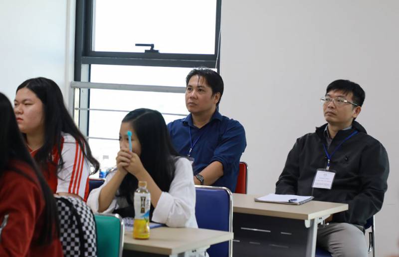 Tiếp Đoàn ĐGN, về phía UEF gồm có TS. Nguyễn Thanh Giang – Hiệu trưởng; TS. Nhan Cẩm Trí – Phó Hiệu trưởng kiêm Trưởng Khoa Kinh tế; ThS. Lê Vũ Hương Giang – Giám đốc Trung tâm ĐBCL, cùng các thầy cô thuộc Khoa Kinh tế và các đơn vị trong Trường.