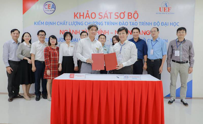 Theo chương trình làm việc, Đoàn ĐGN đã khảo sát cơ sở đào tạo của UEF tại địa chỉ 141 Điện Biên Phủ, Phường 15, Quận Bình Thạnh, TP.HCM. Tại đây, Đoàn đã tiến hành nghiên cứu Báo cáo tự đánh giá, đồng thời kiểm tra hồ sơ và minh chứng mà Trường đã chuẩn bị. Sau đó, Đoàn đã khảo sát văn phòng làm việc, lớp học, thư viện, khu vực tự học, hệ thống phòng học thực hành, phòng máy tính,… và trao đổi trực tiếp với các đơn vị trong toàn Trường; đồng thời, đã tham dự ngẫu nhiên 03 giờ học của sinh viên ngành Tài chính - Ngân hàng.