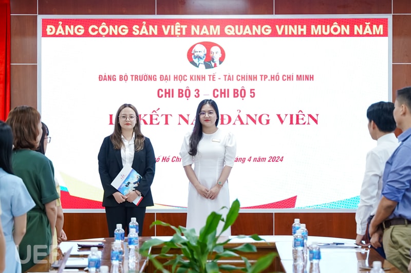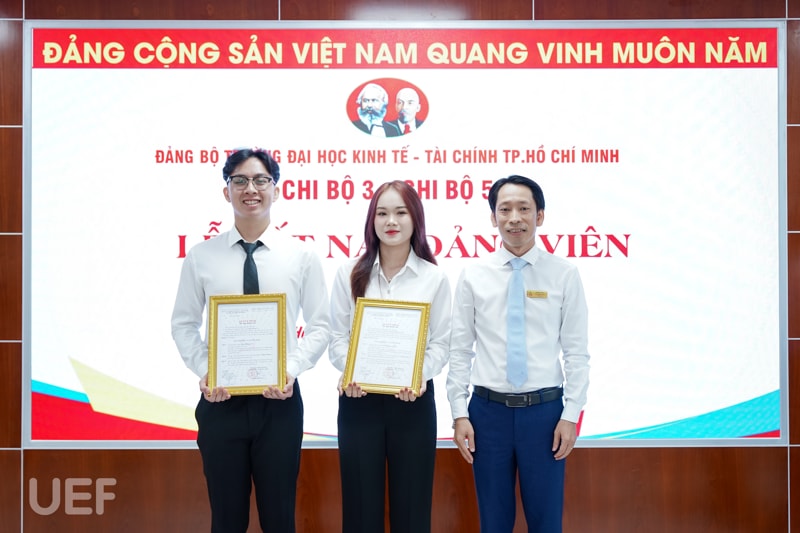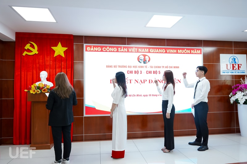 Sáng ngày 16/4, UEF đã tổ chức buổi lễ kết nạp Đảng viên mới cho bốn quần chúng ưu tú sau thời gian học tập, rèn luyện và phấn đấu, trong đó có hai quần chúng đang là sinh viên. Các Đảng viên mới được kết nạp vào Chi bộ 3 và Chi bộ 5 đã nhận quyết định và đọc tuyên thệ, quyết tâm trở thành những người Đảng viên gương mẫu.