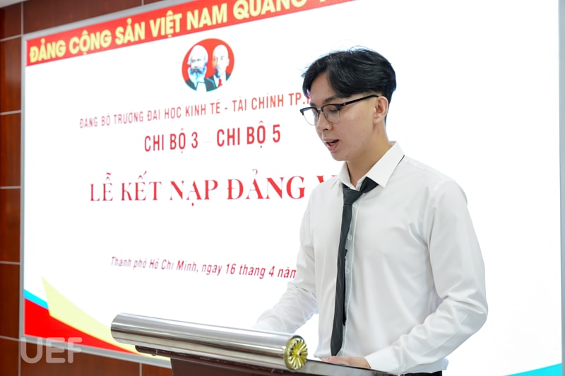Tại buổi lễ, đại diện Đảng ủy UEF, đồng chí Mạch Trần Huy đã gửi lời chúc mừng, đồng thời tiếp thêm động lực để các Đảng viên mới vững tâm và vượt qua những thử thách để trở thành người Đảng viên gương mẫu.
