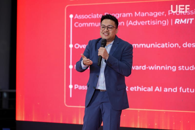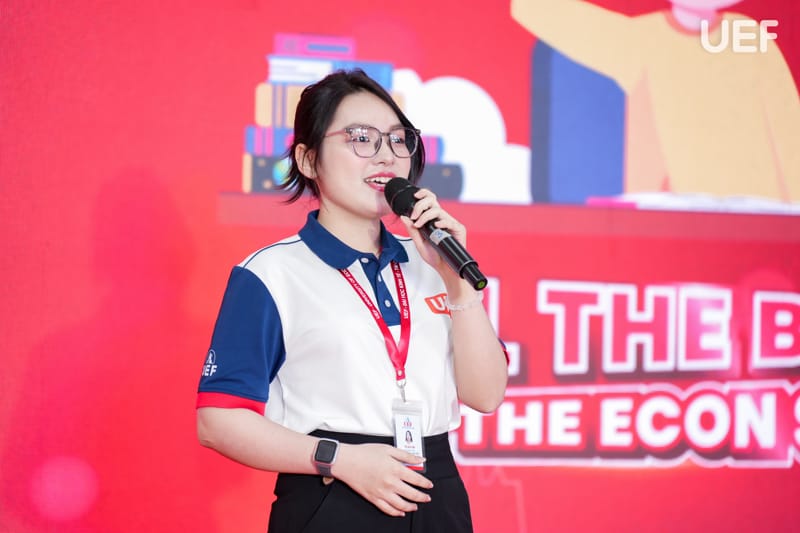 Phát biểu chào mừng, TS. Ngô Minh Hải nhấn mạnh chương trình đào tạo gắn liền thực tế của UEF và Khoa Kinh tế và những hoạt động quốc tế hoá ngay tại trường. Trở thành sinh viên UEF, các bạn sẽ bắt đầu hành trình trở thành phiên bản tốt nhất của mình. Đồng thời, sinh viên Khoa Kinh tế thì luôn nhớ khẩu hiệu “Khoa Kinh tế, dẫn đầu xu thế”.