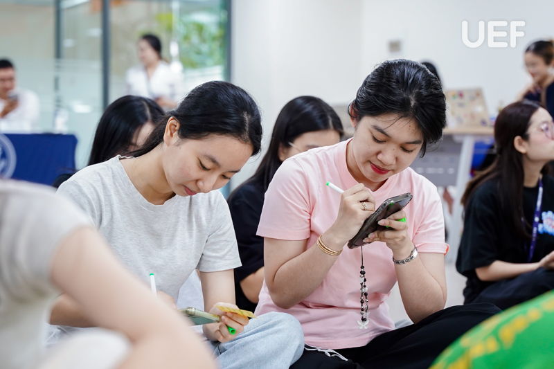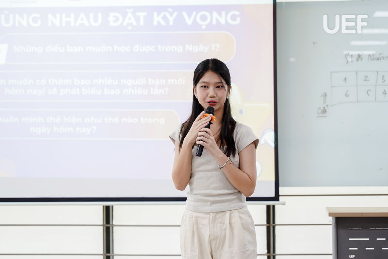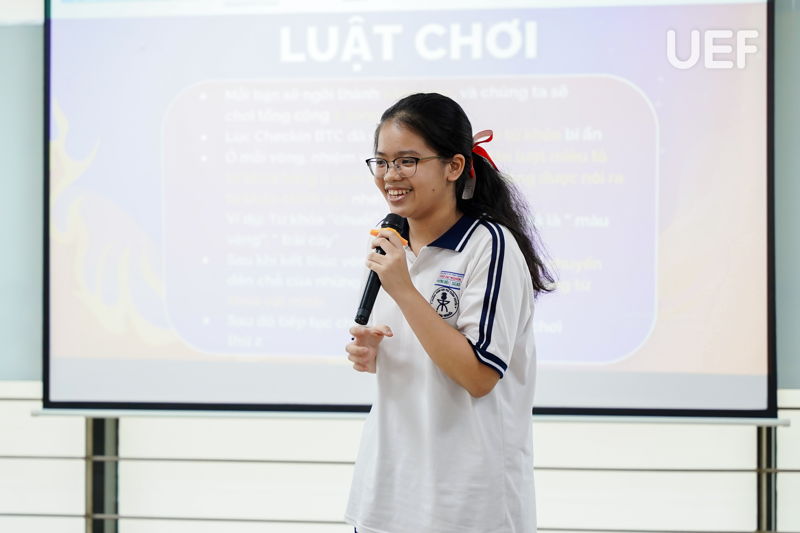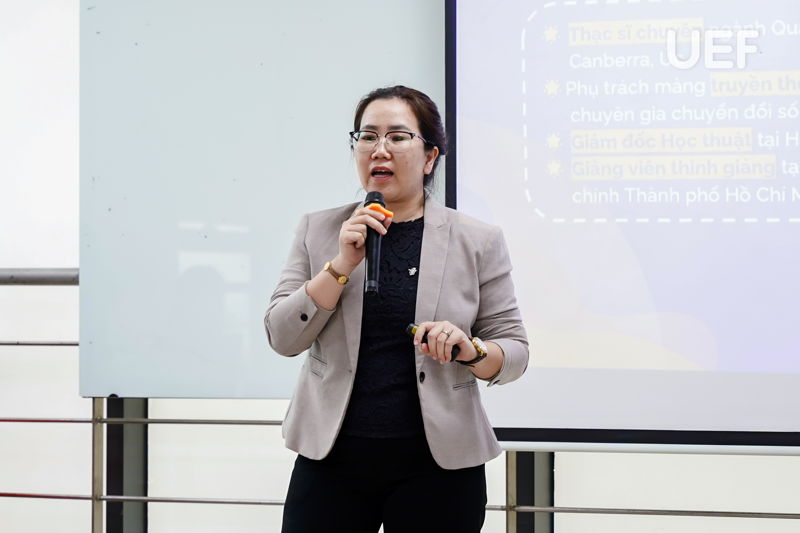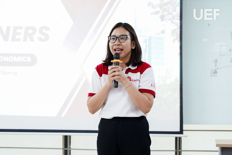 Để học sinh có thêm lựa chọn môi trường học tập năng động ở bậc đại học, ThS. Nguyễn Lê Đông Xuân cũng đã chia sẻ tổng quan về UEF, Khoa Kinh tế và các ngành đào tạo. Ngoài ra, cô còn cung cấp nhiều thông tin thú vị về đời sống sinh viên thông qua các hoạt động phong trào như sân chơi tài năng, học thuật, nghiên cứu khoa học, chương trình tham quan kiến tập thực tế tại doanh nghiệp,...