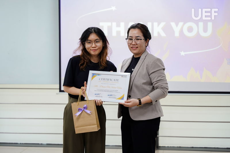 Đại diện AIESEC Vietnam tri ân sự đồng hành của UEF và diễn giả khách mời