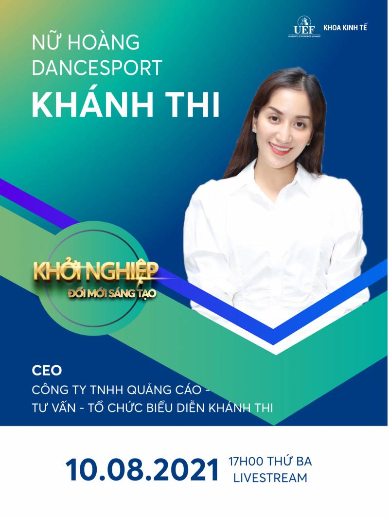 Cuộc thi Khởi Nghiệp Đổi Mới Sáng Tạo 2021 do khoa Kinh Tế - trường đại học Kinh Tế - Tài Chính HCM (UEF) tổ chức đã đi được một chặng đường dài và sắp tìm ra ai sẽ là quán quân vô địch của mùa giải năm nay, tất cả đều có trong phần thi đấu hấp dẫn vòng Chung Kết sắp diễn ra. Dàn ban giám khảo năm nay hội tụ rất nhiều gương mặt thân quen, nổi tiếng, trong đó có cả kiện tướng Dance Sport Khánh Thi.