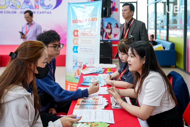 Sinh viên UEF được trực tiếp gặp gỡ nhà tuyển dụng, trao đổi về cơ hội nghề nghiệp, đồng thời tìm hiểu xu hướng việc làm trong các lĩnh vực mới nổi. Đây là cơ hội thiết thực giúp sinh viên “chạm” vào môi trường chuyên nghiệp, hình thành tư duy thực tiễn và mở rộng mạng lưới quan hệ nghề nghiệp. Về phía các doanh nghiệp đối tác, thông qua đây cũng có thể kết nối lẫn nhau, mở rộng mối quan hệ hợp tác, thúc đẩy sự phát triển bền vững, định hướng chiến lược kinh doanh trong thời đại mới.