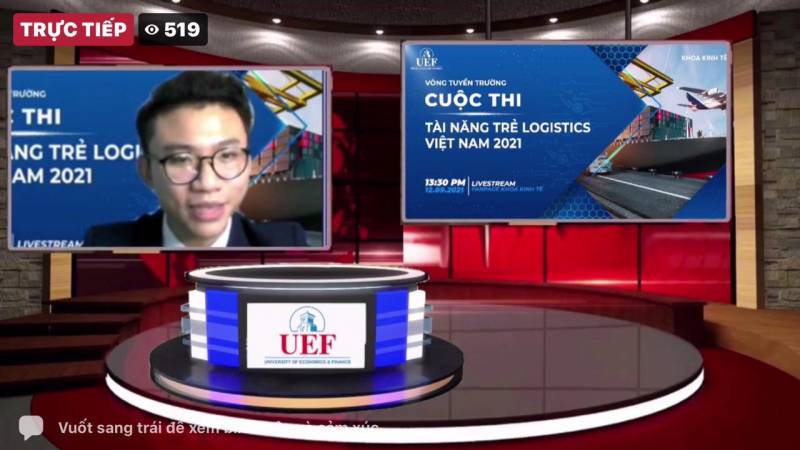 Tại Trường Đại học Kinh tế - Tài chính TP. HCM (UEF), ngành Logistics và Quản lý chuỗi cung ứng do Khoa Kinh tế quản lý định hướng đào tạo kiến thức và nâng cao kỹ năng cho sinh viên dựa trên những hoạt động trải nghiệm thực tế, khuyến khích sinh viên tham gia vào các cuộc thi học thuật; với tinh thần hưởng ứng Cuộc thi Tài năng trẻ Logistics Việt Nam do Hiệp hội Phát triển nhân lực Logistics Việt Nam tổ chức, các đội thi của UEF đã tham gia tranh tài tại Vòng thi Sơ tuyển. Kết quả của Vòng Sơ tuyển đã chọn ra được 12 đội thi xuất sắc nhất chính thức bước vào Vòng Tuyển trường UEF. Nhìn lại hành trình của Vòng Tuyển trường, các bạn thí sinh đã trải qua 2 phần thi bao gồm (i) Thi trắc nghiệm về kiến thức logistics và (ii) Thi Thuyết trình – Vấn đáp. 4 thí sinh có kết quả cao nhất của cả 2 đợt thi sẽ được chọn và tạo thành một đội thi đại diện UEF để tiếp tục tham gia Vòng Tứ kết, Bán kết và Chung kết Cuộc thi Tài năng trẻ Logistics Việt Nam 2021.
