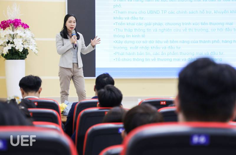 Chị Trần Thị Xuân Trang, trưởng phòng huấn luyện, Trung tâm xúc tiến thương mại đã mang đến nhiều câu chuyện thực tế cho các UEFers