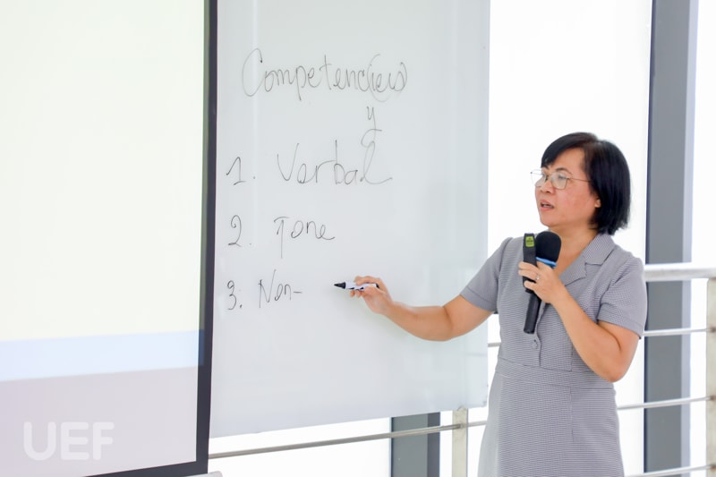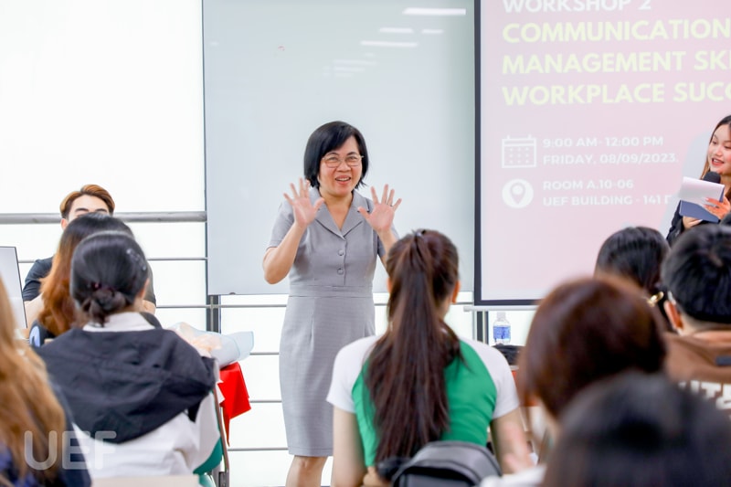 Tại buổi workshop, diễn giả đã mang đến cho sinh viên UEF kiến thức về tầm quan trọng của kỹ năng giao tiếp hiệu quả cùng đồng nghiệp để hoàn thành dự án; Việc giao tiếp nơi công sở, đặc biệt là môi trường công ty đa quốc gia; Giá trị kỹ năng quản lý thời gian và bí quyết để xây dựng kỹ năng quản lý thời gian hiệu quả.