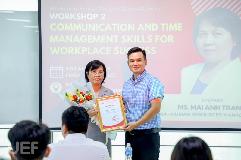 Chuỗi workshop “Proskill” do Khoa Kinh tế UEF tổ chức nhằm chuẩn bị cho sinh viên đầy đủ hành trang trước khi bước vào môi trường doanh nghiệp. Sau khi tiếp thu những bí quyết khi tham gia phỏng vấn và rèn luyện bản lĩnh cá nhân trước nhà tuyển dụng, sáng 8/9, UEFers tiếp tục được tìm hiểu về “Communication and time management skills for workplace success”.