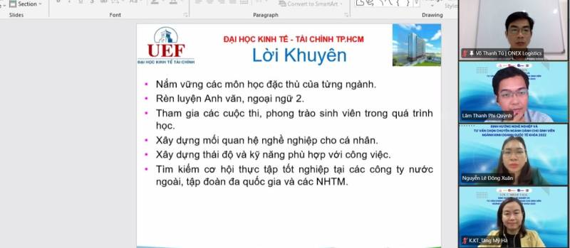 Buổi tọa đàm với chủ đề “Định hướng nghề nghiệp và tư vấn chọn chuyên ngành cho sinh viên ngành Kinh doanh quốc tế khóa 2022” đã trang bị cho sinh viên những thông tin hữu ích và là nguồn động viên và khích lệ mạnh mẽ cho sự phát triển của sinh viên giúp các bạn tự tin trên con đường học tập và con đường sự nghiệp trong tương lai. Khoa Kinh Tế luôn nỗ lực tổ chức những sự kiện hữu ích để hỗ trợ sinh viên chuẩn bị đầy đủ hành trang trên con đường học tập và phát triển bản thân.