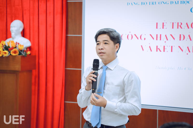 Phát biểu tại buổi lễ, Đồng chí Nguyễn Thanh Giang - Bí thư Đảng ủy, Hiệu trưởng Nhà trường gửi lời chúc mừng các tân Đảng viên đã vinh dự đứng vào hàng ngũ của Đảng Cộng sản Việt Nam. Đây là niềm vinh dự, tự hào không chỉ của các đồng chí, của Chi bộ 2 mà còn của Đảng bộ UEF. Đồng thời, Đồng chí Nguyễn Thanh Giang cũng mong muốn các đảng viên mới sẽ phát huy hơn nữa trí tuệ, năng lực, phẩm chất đạo đức của người Đảng viên, xứng đáng là Đảng viên Đảng Cộng sản Việt Nam.