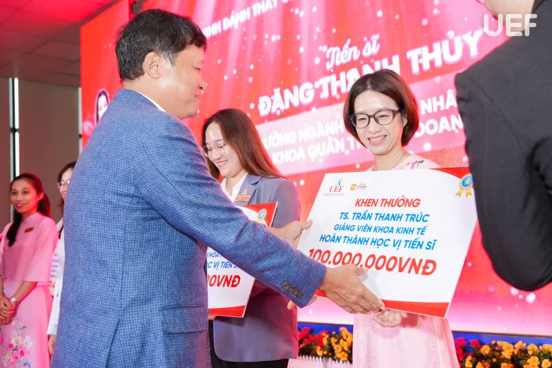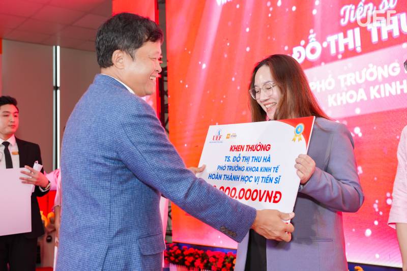 Tại buổi Lễ, niềm vui được nhân đôi khi Khoa Kinh tế có 3 giảng viên xuất sắc nhận khen thưởng vì đã hoàn thành học vị tiến sỹ gồm TS. Tăng Mỹ Hà – Phó Trưởng Khoa thường trực khoa Kinh tế; TS. Đỗ Thị Thu Hà – Phó Trưởng Khoa Kinh tế kiêm Trưởng ngành Logistics và Quản lý chuỗi cung ứng và TS. Trần Thanh Trúc – Giảng viên khoa Kinh tế.